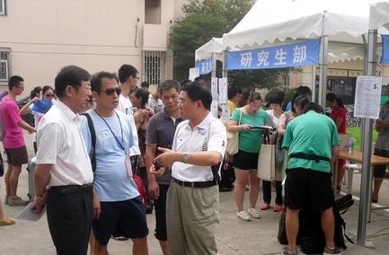 上午10点,副校长叶志明及校长助理李伟、研究生部常务副主任王光东等部门负责同志到现场看望新生和工作人员。叶志明仔细询问了各项工作的进行情况,对大家的辛勤工作表示慰问,并和报到新生亲切交谈。