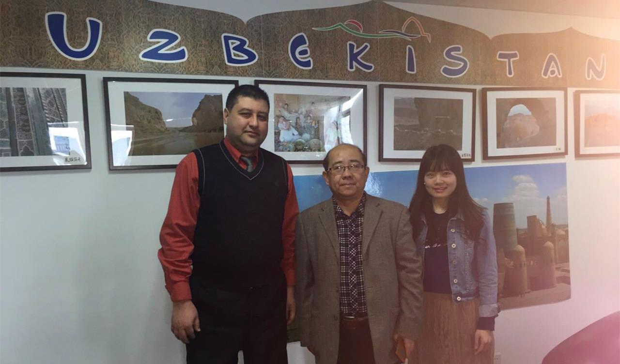 陈伟研究员主要从事祆教文化和美术考古的研究。祆教(外称琐罗亚斯德教,也称“拜火教”),是基督教诞生之前西亚最有影响的宗教,是古代波斯帝国的国教,也是中亚等地的宗教。中世纪中国,祆教艺术作为中国中古时期艺术的一个独特组成部分,以祆教为载体,将西亚、中亚乃至古希腊、罗马的艺术风格带入中原,与中原地区的艺术风格相结合,为中国古代艺术的发展增添了新的内容。而乌兹别克斯坦的布哈拉和撒马尔罕一带是当时重要的文化与宗教中心,直到公元一世纪,祆教仍是当地最占优势的宗教。至今布哈拉等城市仍然保存大量祆教的考古遗迹。陈伟研究员向阿戈扎姆赫德热耶夫总领事展示了部分研究成果,他认为开展中乌之间的祆教考古合作大有可为,希望通过此次拜访,与乌方考古界和祆教研究界全面建立联系,推动中国艺术产业研究院与乌方的协同研究。