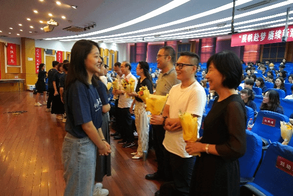 正值教师节来临之际,在场同学们向老师们献上鲜花,以表达大家对老师们的感谢和祝福。