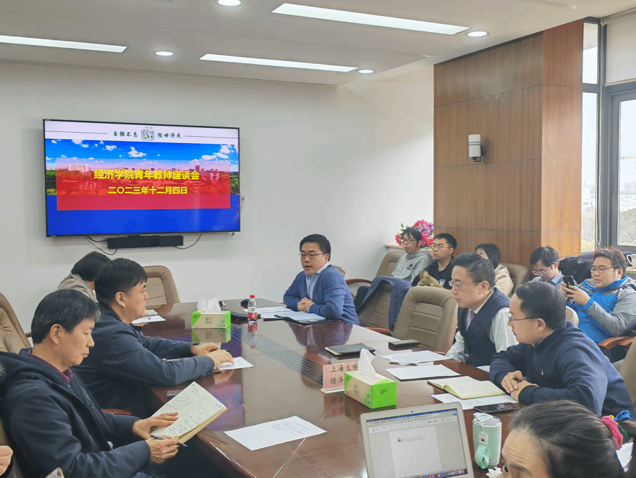 12月4日上午,经济学院青联会于经管楼567会议室举行2023年冬季学期青年教师座谈会。经济学院党委书记孟添,党委副书记、副院长冯玉鑫,副院长毛雁冰,副院长、经济系主任刘康兵,副院长、金融系主任、青联会会长周思以及学院二十多位青年教师参加了本次座谈会。会议由周思主持。