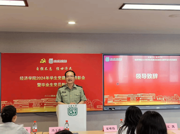 冯玉鑫在致辞中表示,在中国共产党成立103周年之际,举行学生党建总结表彰会暨毕业生党员教育具有特殊的意义,毕业生正处于踏出校门与步入社会的特殊转折时期,在告别学院培养走向岗位的同时,需要继续秉持着“自强不息,经世济民”的院训,不断完善自我,提升服务能力和水平。毕业生党员通过党纪学习教育,结合行业要求,规范自身行为,从而更稳健、更健康地开启职业生涯规划。
