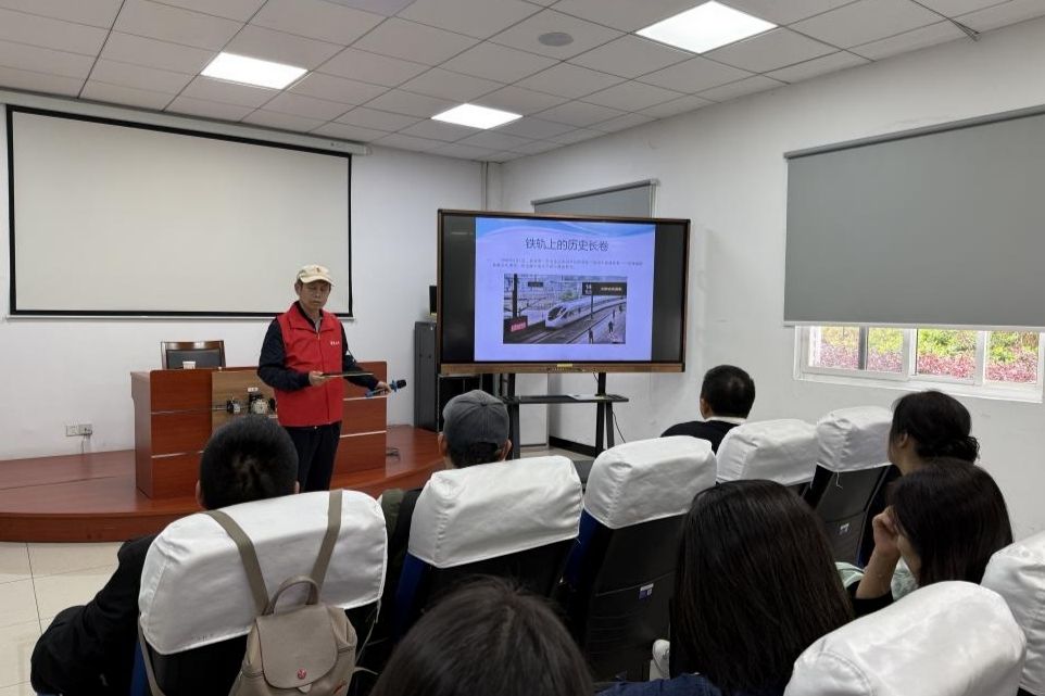 下午,学工队伍集体参观了虹桥动车运用所。上海市劳动模范、铁道部首批“百佳检车员”称号获得者、原上海铁路局上海动车辆段党支部书记姜学定带来了主题为《铁轨上的历史长卷:从绿皮车到复兴号》的讲座,从中国铁路发展历史、高速铁路的核心组成出发,介绍了上海动车段的变迁与发展。